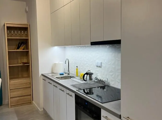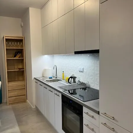 Apartament posiada aneks kuchenny, gdzie dla wygodnego pobytu przewidziano piekarnik i zmywarkę do naczyń. Od obiektu do przystanku autobusowego Karolkowa 02 w odległości kilku przecznic.
